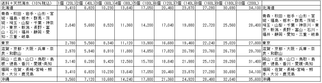 ◎天然海水の送料(2026年3月から適用)